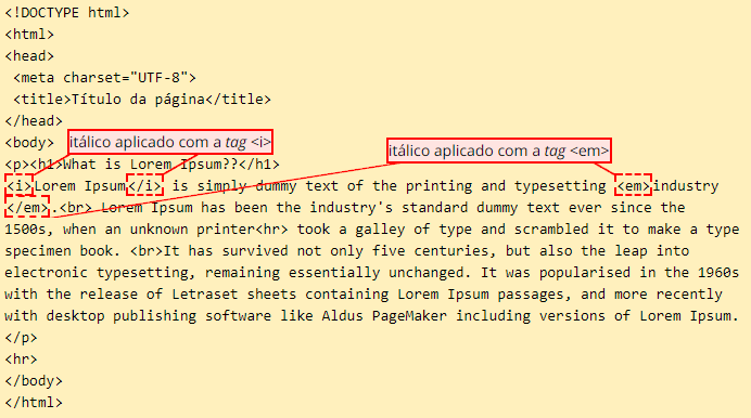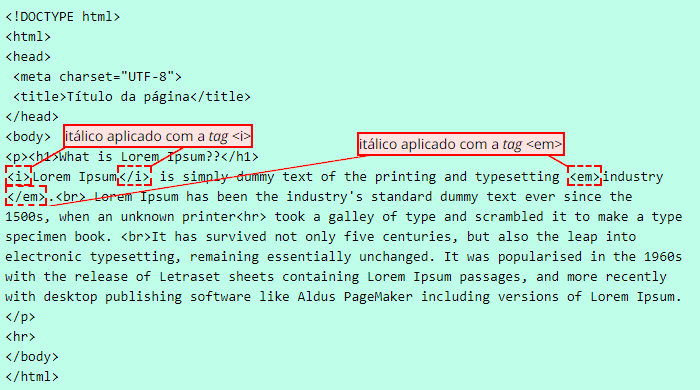Aplica itálico ao texto. É usada para dar ênfase a uma palavra.