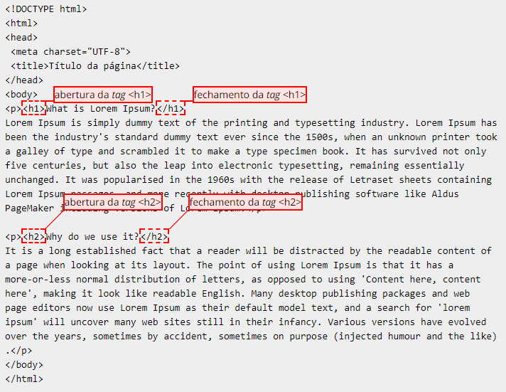 Agora que conhecemos algumas das principais tags da estrutura básica de HTML, que tal fixar o que aprendemos por meio de um infográfico? Clique nas tags.