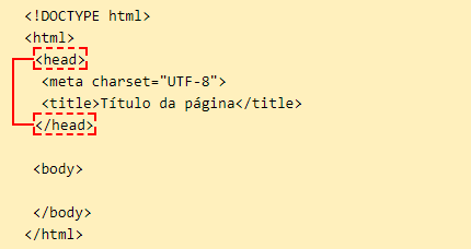 Corresponde ao cabeçalho. Dentro dela, inserimos as informações que o navegador vai ler, como títulos, descrições, palavras-chaves e outras.