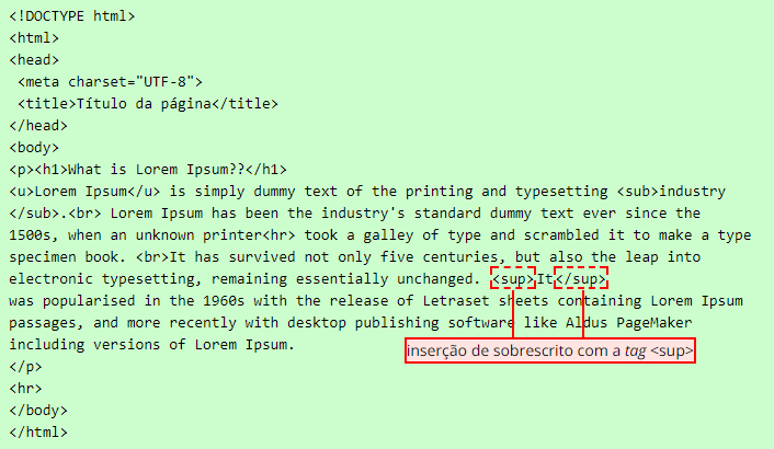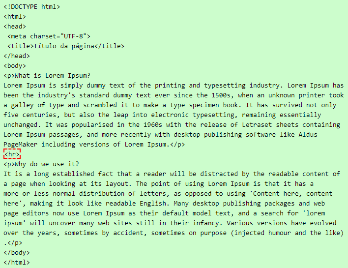 Gera uma linha horizontal, acarretando a quebra do texto. É uma tag nula, o que elimina a necessidade de fechá-la.