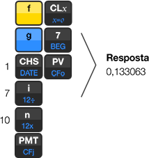 Como este cálculo é para saber o valor das prestações, você deve usar a tecla PMT. Lembre-se de que o valor