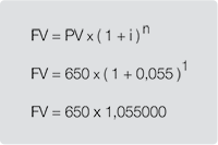 Aprenda a calcular o valor de uma compra a ser paga depois de 30 dias. Seu valor à vista é de R$ 650,00 e a taxa de juros de 5,5% a.m.
