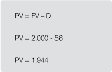 A operação de desconto é bastante simples: trata-se da diferença entre o valor presente (PV) e futuro (FV) de um título, ou seja, o valor descontado de uma quantia.