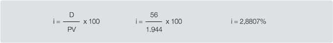 Resultado: d = 3,60% ao período